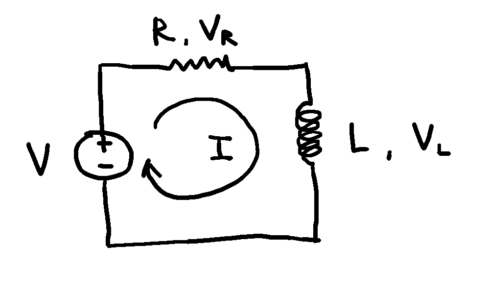 I(t) = \frac{V}{R} + (I_0 - \frac{V}{R})e^{-Rt/L}